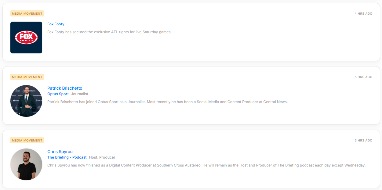 Stay on top of key updates with the newsfeed - a constantly updated feed of media movements, journalist interviews and content to assist with your media communications strategy.