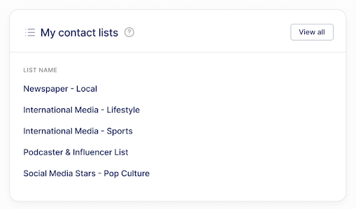 A central hub for your most recently updated or saved media contact lists, giving you instant access to your contacts with a single click.