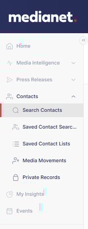 Access all of Medianet’s data-rich journalist and news outlet bios, pitching profiles and media lists with one login. Click on ‘Contacts’ and then 'Search Contacts' from the navigation menu to start building your custom lists.