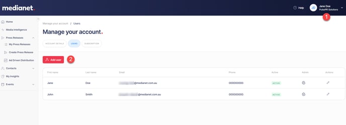 As an Admin user on a subscription plan, you can invite additional users to your organisation's Medianet account.