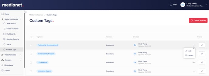 - Go to Custom Tags in the side navigation under Media Intelligence.