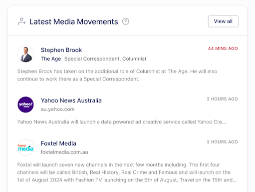 Stay informed with live updates on movements within the media landscape, including journalist role changes and new appointments to help you spot opportunities to build relationships with newly assigned media professionals.