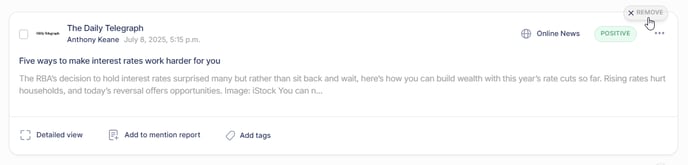 Note: Removing a mention only affects the specific search where you removed it. If the same content matches another search, it will still appear in that search.