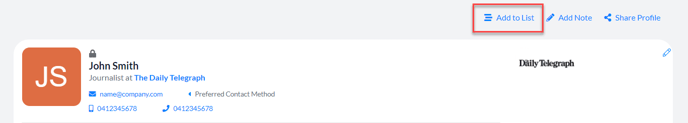 To add a private record to a list, click on the outlet or contact you wish to apply this to and then click on 'Add to List' where you'll then have the option to save the record in a new or existing list.
